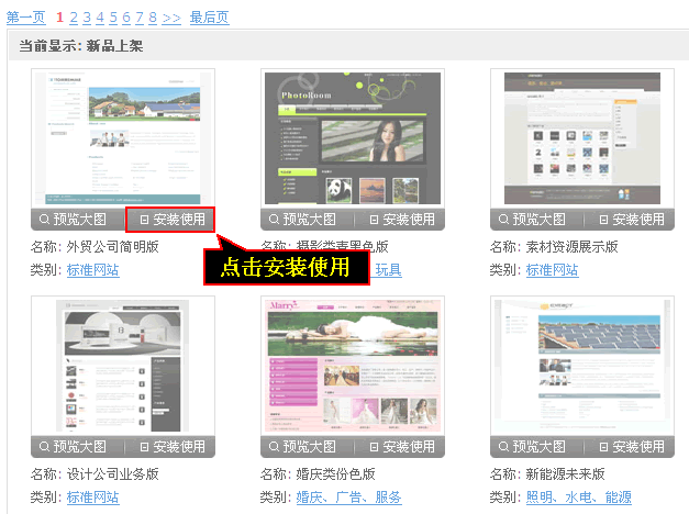 1、选中模板后点击“安装使用”