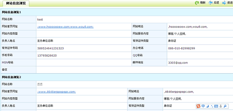 浏览网站信息:可以查看您已经添加的所有的网站的备案信息